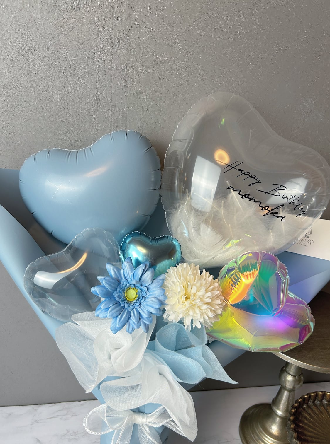 クリアハートの中にフェザーを閉じ込め、オーロラバルーンがキラリと光るキュートな存在感。